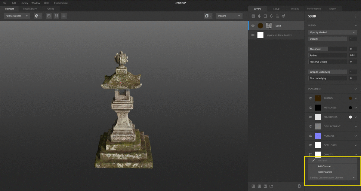 - Scroll down to the Custom Export Channel available at the bottom of the layer’s panel.