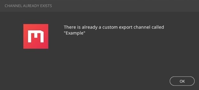 - When you hit Add Channel, enter the channel’s name in the “New Custom Export Channel” pop-up and hit save. In this case, the mask information has been kept by the name “Example” that is now visible in the custom channel list.