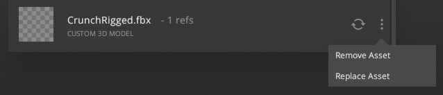 The “replace asset” option allows you to replace the asset with another 3D model or custom image for custom assets.