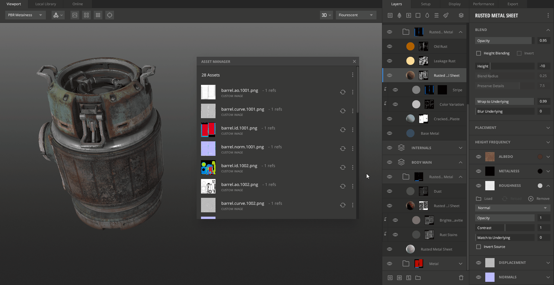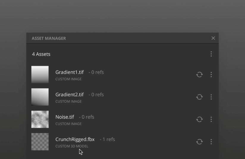 Whenever you create a mix, you will be using multiple assets such as surfaces or models from either the local library, your custom 3D models, or custom image files. The Asset Manager helps keep track of all these assets so that you can quickly view or edit them from a single window instead of searching for them manually through the layer stack.
