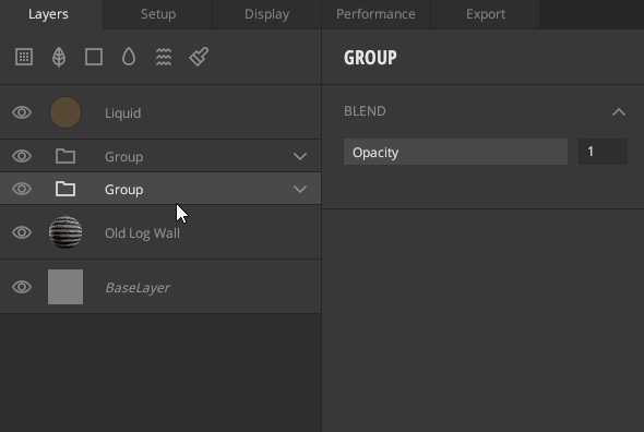 Groups can be used to create custom Smart Materials. Once you have created your group, right-click on the group layer and click on “Export as Smart Material”. This will export your Group as a Smart Material to your Local Library. This Smart Material can be re-used in any Mix and can be opened as a Mix itself.
