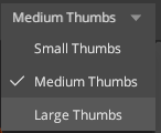 Change your library’s view by resizing your asset icons. Select a size option from the drop-down at top right of the library.