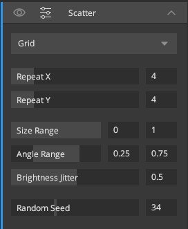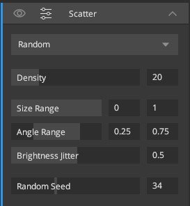 - Density: In a random scatter, control the density of the scattered texture on the layer.