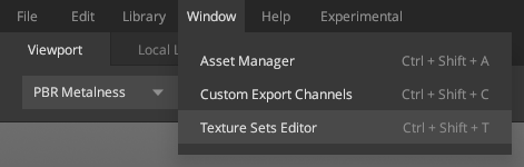 You can access the Texture Set Editor through the Window’s drop-down menu.